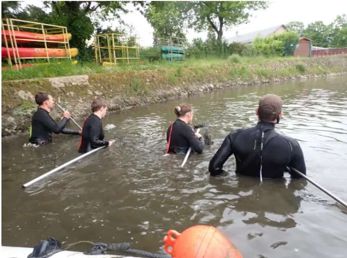 Nous avons recherché les populations de moules d'eau douce patrimoniales au Mans avant leur sauvegarde par déplacement.